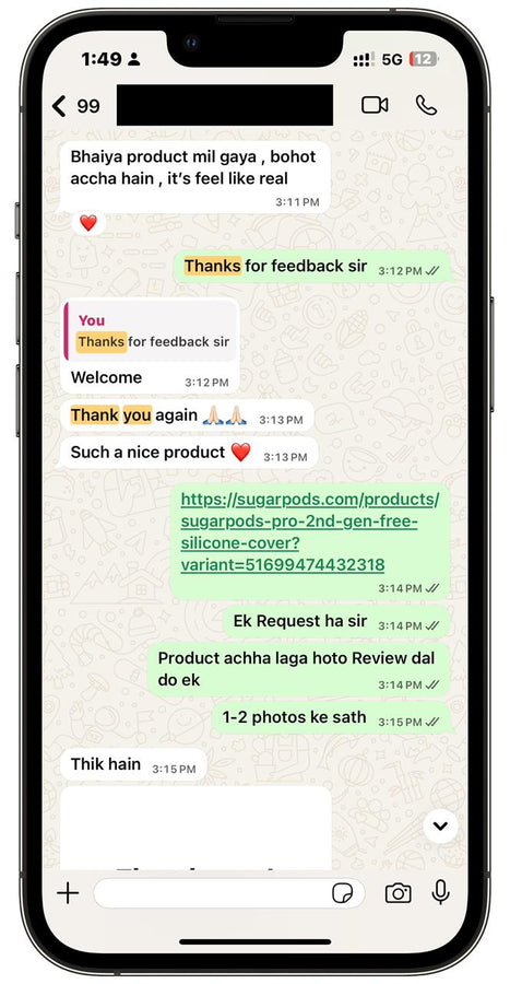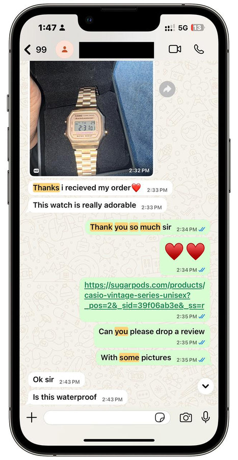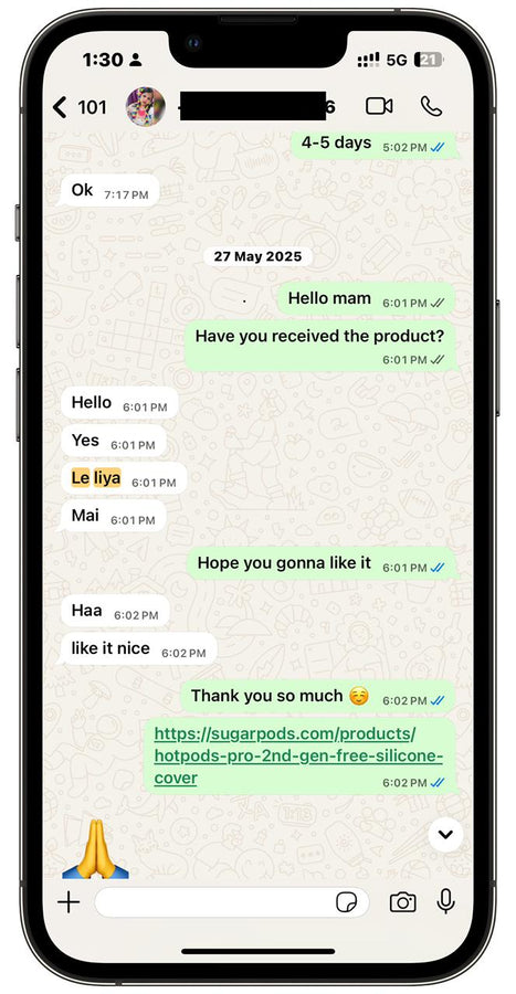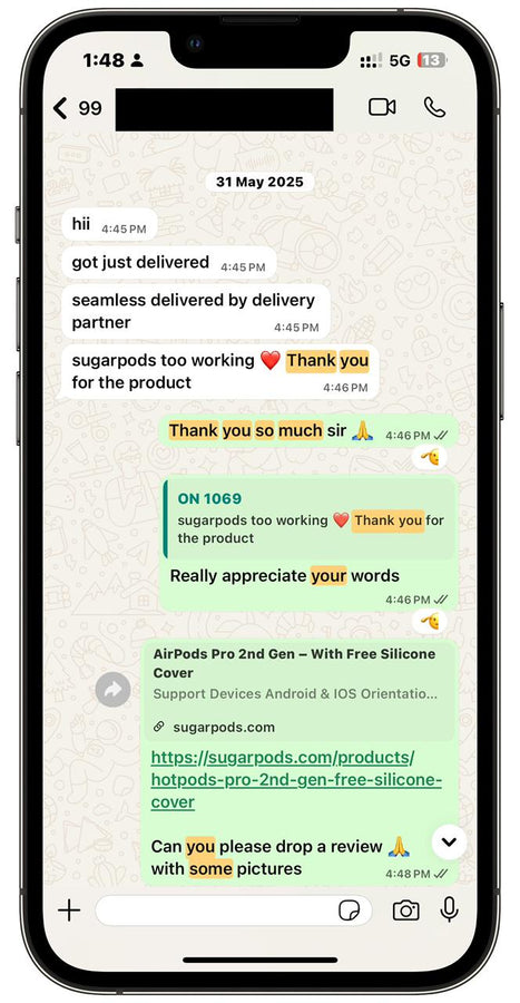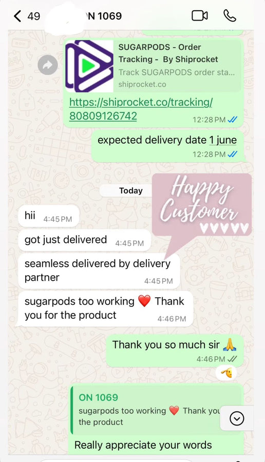 We offer hassle-free returns within 7 days of delivery. If you’re not satisfied, contact us at Care@sugarpods.com or WhatsApp +919289032522 and we’ll make it right.